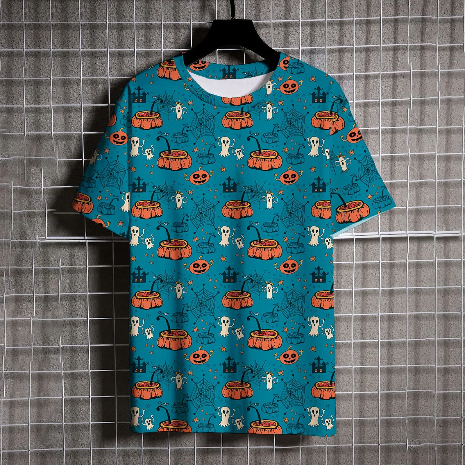 Halloween Versatile Men's T-shirts Christmas Element Pumpkin Head Print Oversized T-shirt Men's y2k Short Sleeve Tee Tshirt Tops